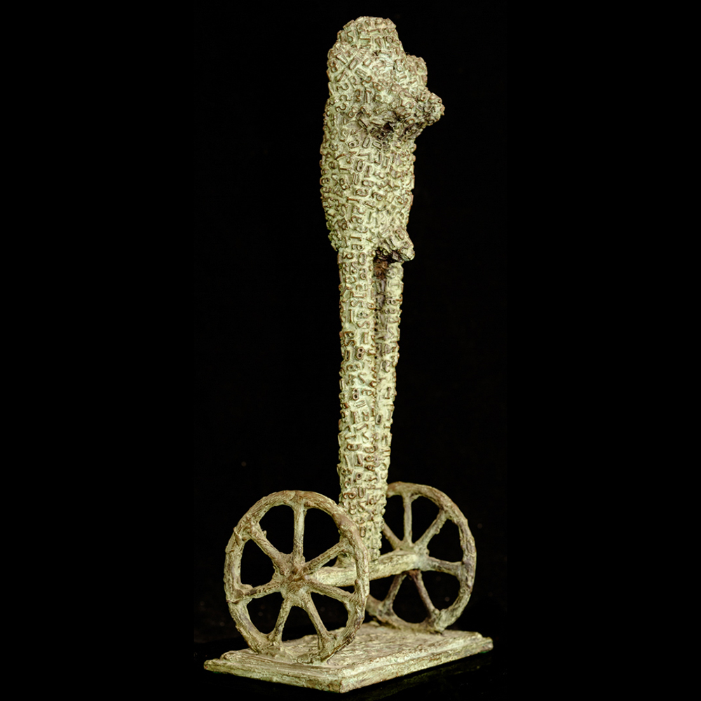 A leading Canadian sculptor, Dale Dunning was born in Ottawa and has worked from his foundry near Almonte, Ontario for over four decades. Working with bronze, steel, and aluminum, his works are evocative and meticulously executed. “My sculptures are objects of reflection and contemplation,” he states. “The head that I employ in most of my work is generic, non-specific, genderless, egg-like in form and intention.”