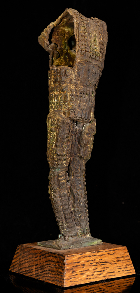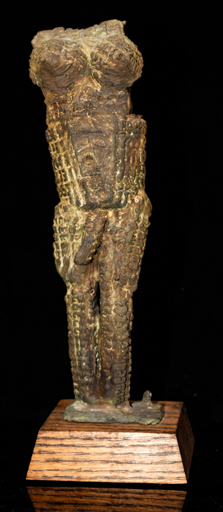 A leading Canadian sculptor, Dale Dunning was born in Ottawa and has worked from his foundry near Almonte, Ontario for over four decades. Working with bronze, steel, and aluminum, his works are evocative and meticulously executed. “My sculptures are objects of reflection and contemplation,” he states. “The head that I employ in most of my work is generic, non-specific, genderless, egg-like in form and intention.”