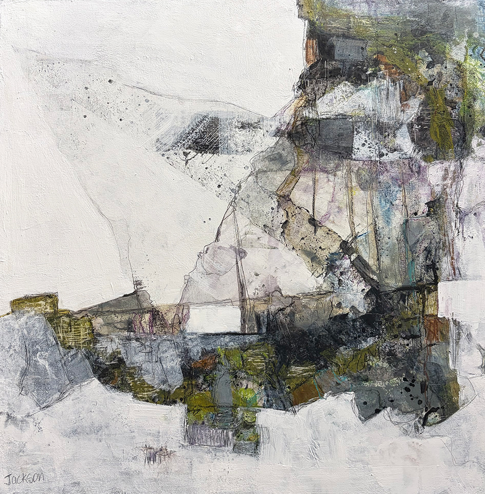 Born in Regina, Saskatchewan and now based in Ompah, Ontario, Liz Jackson’s work is rooted in the natural environment. Her interest is in creating abstract works inspired by her geography on the Canadian Shield, where ancient rock, trees, and water breathe life into her work. “My practice is an intuitive journey where the initial chaos of gestural mark-making gives way to abstract compositions reflecting the power of the land”, she says.